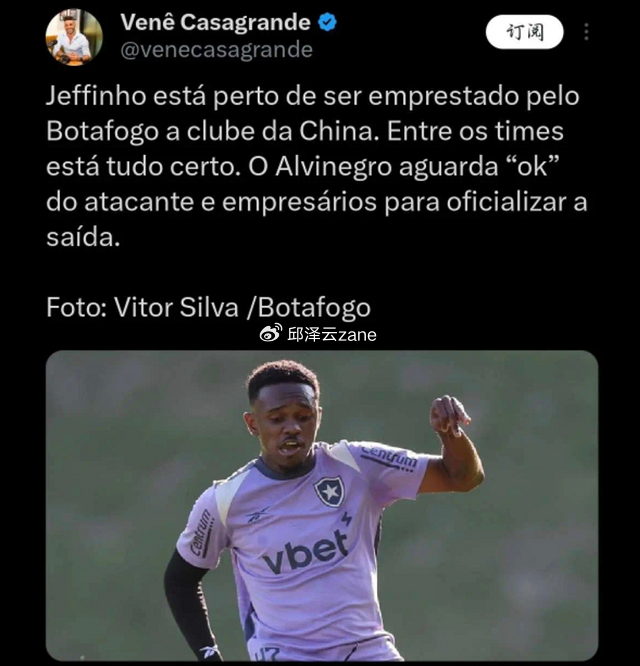 中超最大牌的外援来了。巴西权威记者的最新消息,中超从巴甲博塔弗戈租借来了“巴西登贝莱”热菲尼奥,身价高达450万欧,直接超越米特里策和克雷桑,成为中超现役最大牌的外援。我从3个方面介绍一下他,你就知道他对于目前的中超绝对是降维打击了。第一个,最高身价达到过800万欧的左边锋,热菲尼奥曾被法...