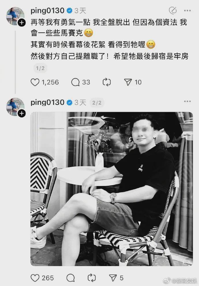 9月3日,江祖平发布了该名男性的马赛克照片,但还是被网友扒了出来,原来是三立资深副总龚美富之子龚益霆。