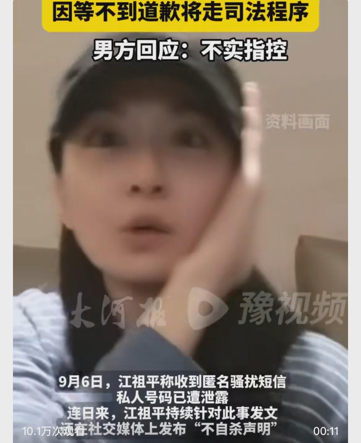 9月6日,江祖平因公布这件事收到匿名骚扰短信,且私人号码被泄露。为此,她不得不在网上发布“不自杀声明”。意思是,如果她有任何意外,都是被别人加害的。她本人不会自杀。