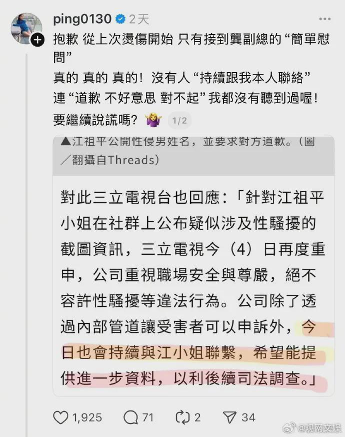 三立电视台表示正在调查中。