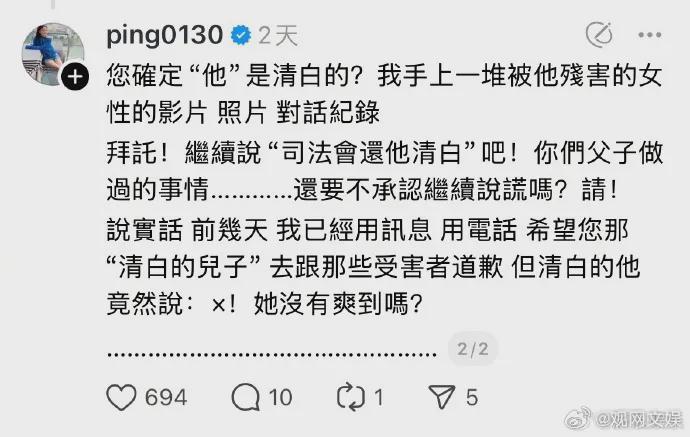 9月3日,江祖平发布了该名男性的马赛克照片,但还是被网友扒了出来,原来是三立资深副总龚美富之子龚益霆。
